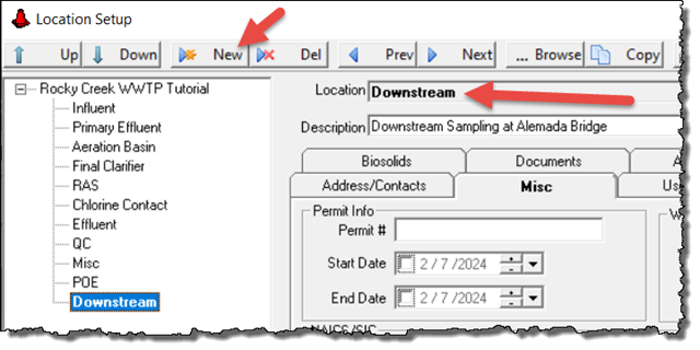 Step 1:  WIMS, add the location (see Location Setup) Downstream: