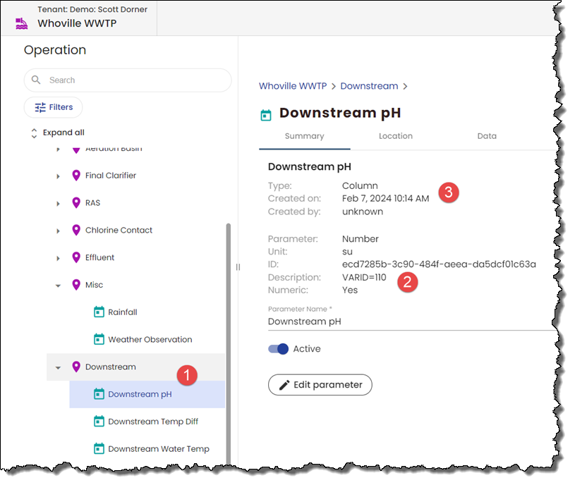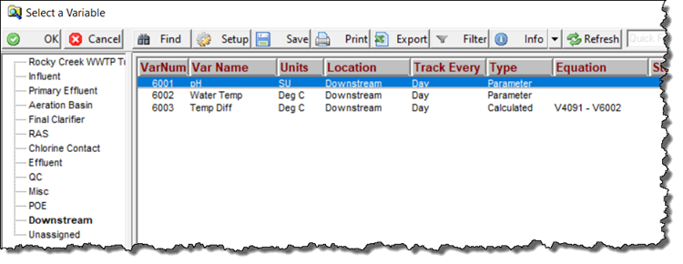 Example: Adding a sampling location Downstream with pH, Temperature, Temp Differential Calc variables