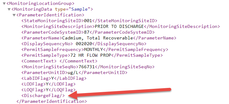 Starting in January 2024, the Wisconsin eDMR now requires a Sample Point active field to be populated for each parameter. In the XML file, this populates the DischargeFlag Tag.