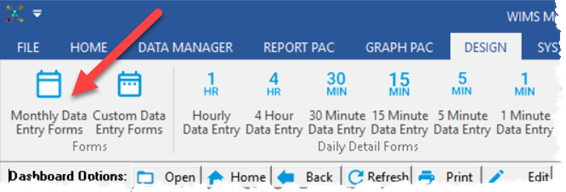 Monthly Data Entry Design allows you to add new, change existing, and delete Monthly Data Entry Forms. |
