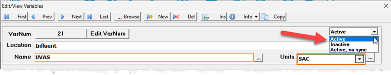 - Active - Variable is Active in WIMS and Rio and Data is synced. VARDESC.ISACTIVE=-1